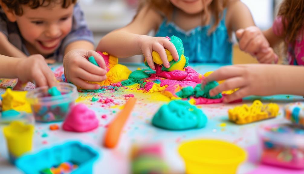 Engaging kids with Playdough isn't just about keeping them occupied; it's about sparking their creativity and enhancing their skills. Consider challenging them with activities like "Guess What I'm Creating" or "Shape Your Beloved Creature," where they can dive into their imagination and improve their fine motor skills. Or perhaps a "Highest Tower Challenge" to stimulate their critical thinking abilities. With "Playdough Monsters," they can immerse themselves in storytelling and cooperative play. Each challenge offers a unique way to blend enjoyment with learning. Curious about how you can incorporate these activities and keep kids entertained for hours?