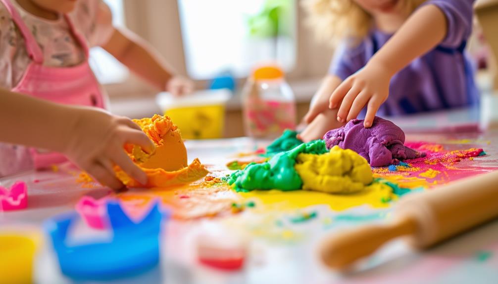 Incorporating textured materials like glitter or sand provides extra sensory stimulation and tactile exploration, making playdough more engaging. These diverse textures and scents create a multisensory experience that is both enjoyable and educational. By integrating these elements into playdough activities, you offer holistic sensory stimulation that supports your child's growth and development delightfully.